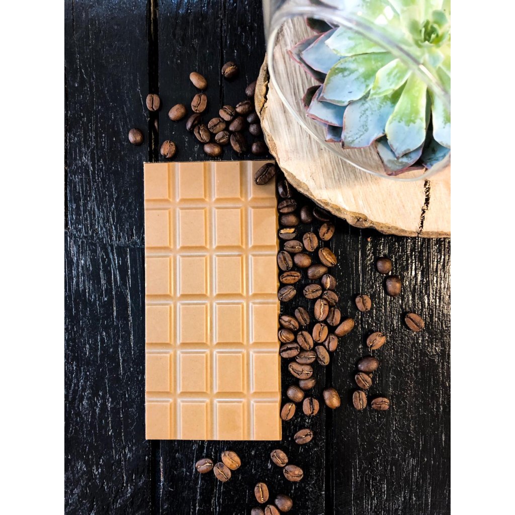 Bílá čokoláda s kávou. Minimální obsah kakaové sušiny 28%