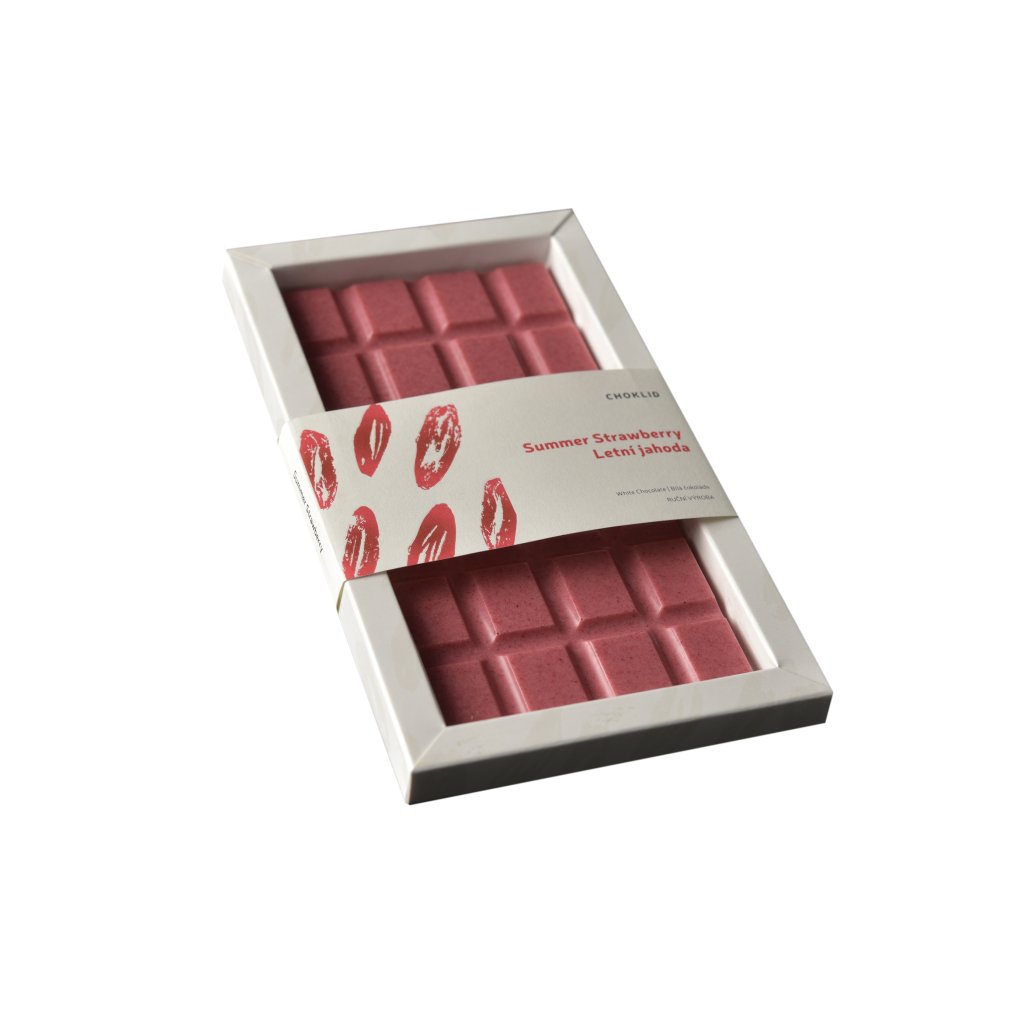 Krásně červené zralé jahody jsou základem pro tuto naši čokoládu. Jemná chuť čokolády je podtržená lákavou vůní, takže potěší všechny vaše smysly. Dokonale vyvážený poměr těch nejkvalitnějších surovin dal vzniknout lahodně dobré čokoládě. Kousky jahod jsou 100% přírodní, bez konzervačních látek, přidaného cukru či dalších přísad. Přírodní jahody jsou bohaté na antioxidanty a živiny.